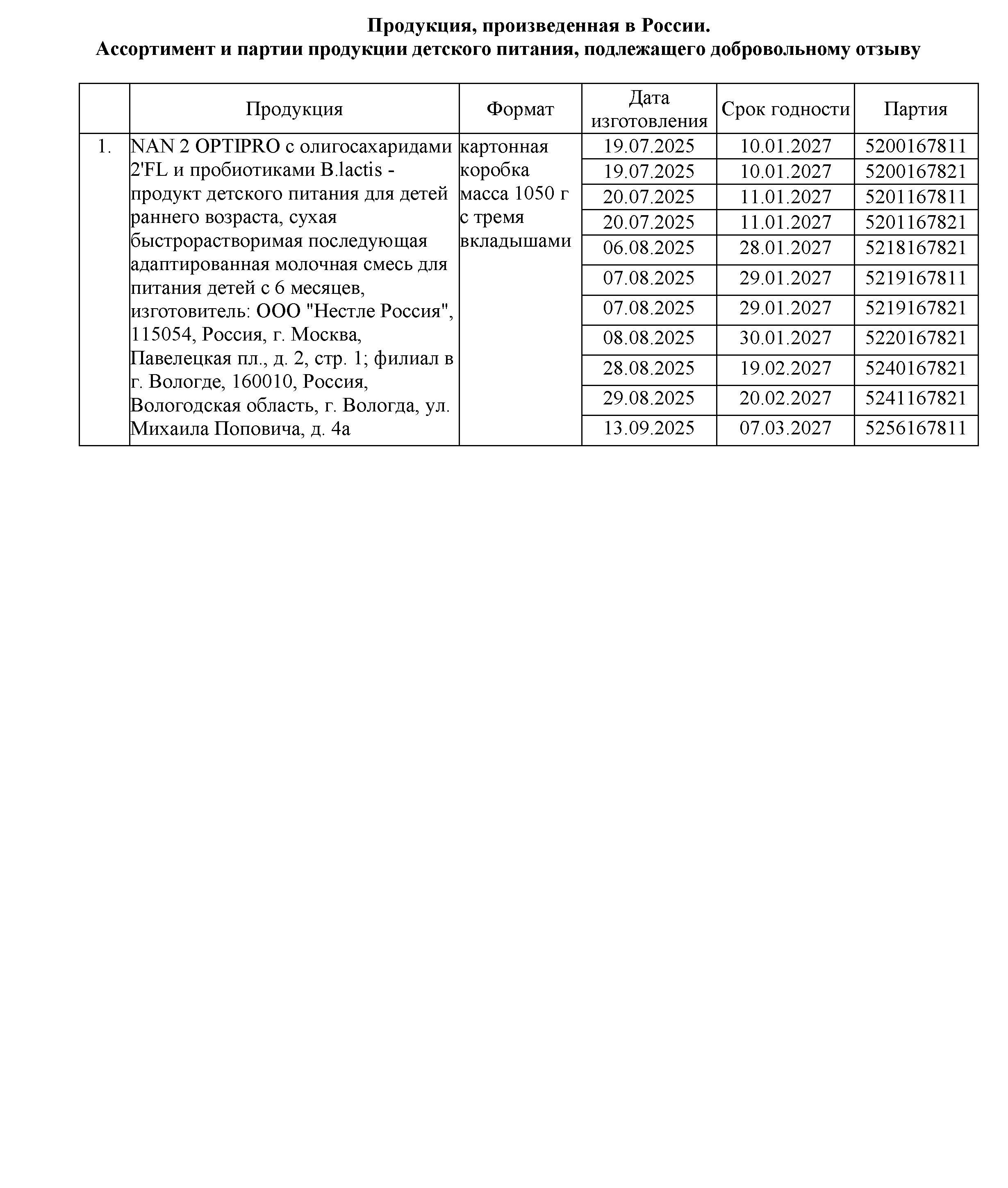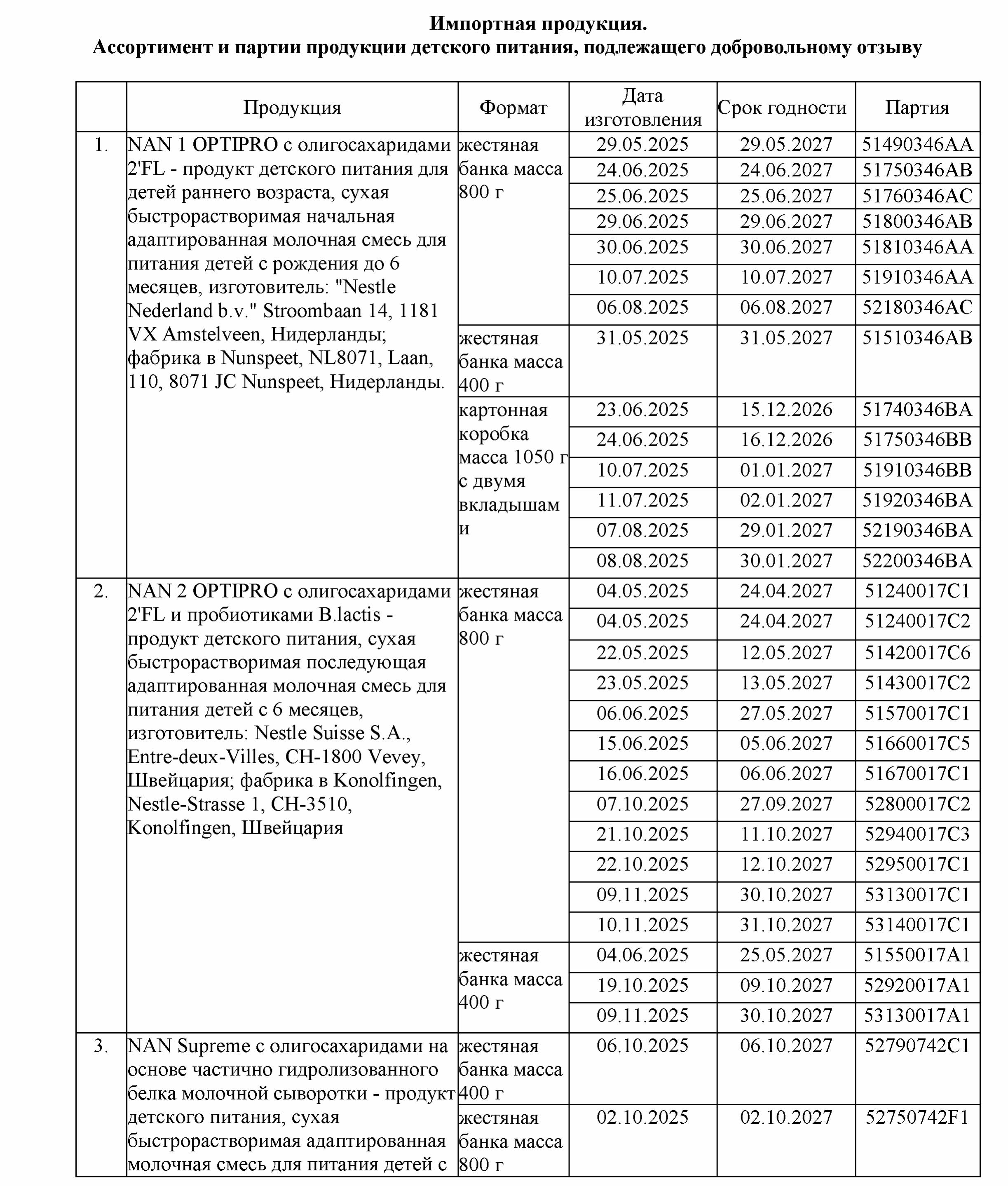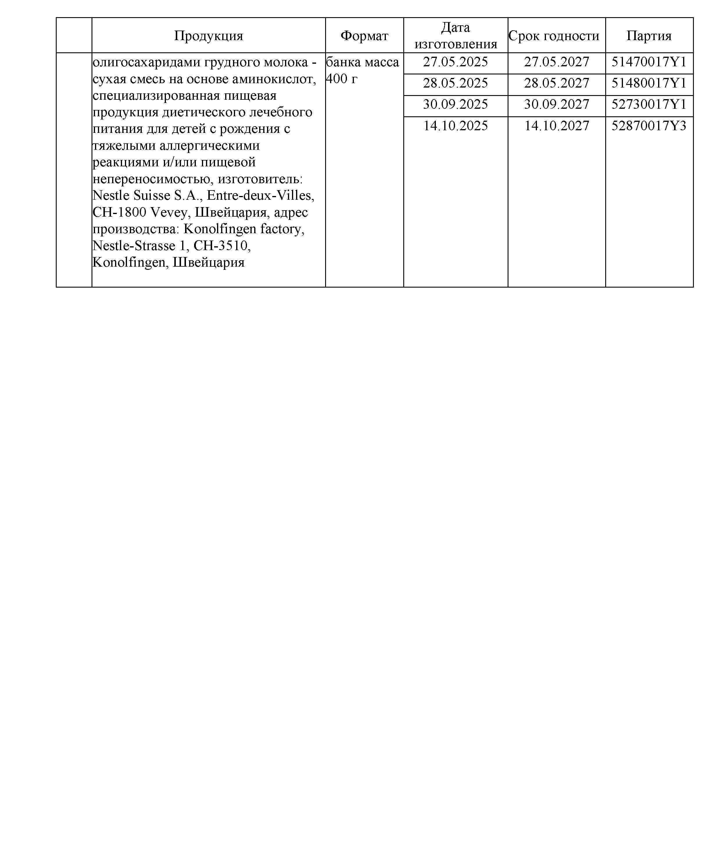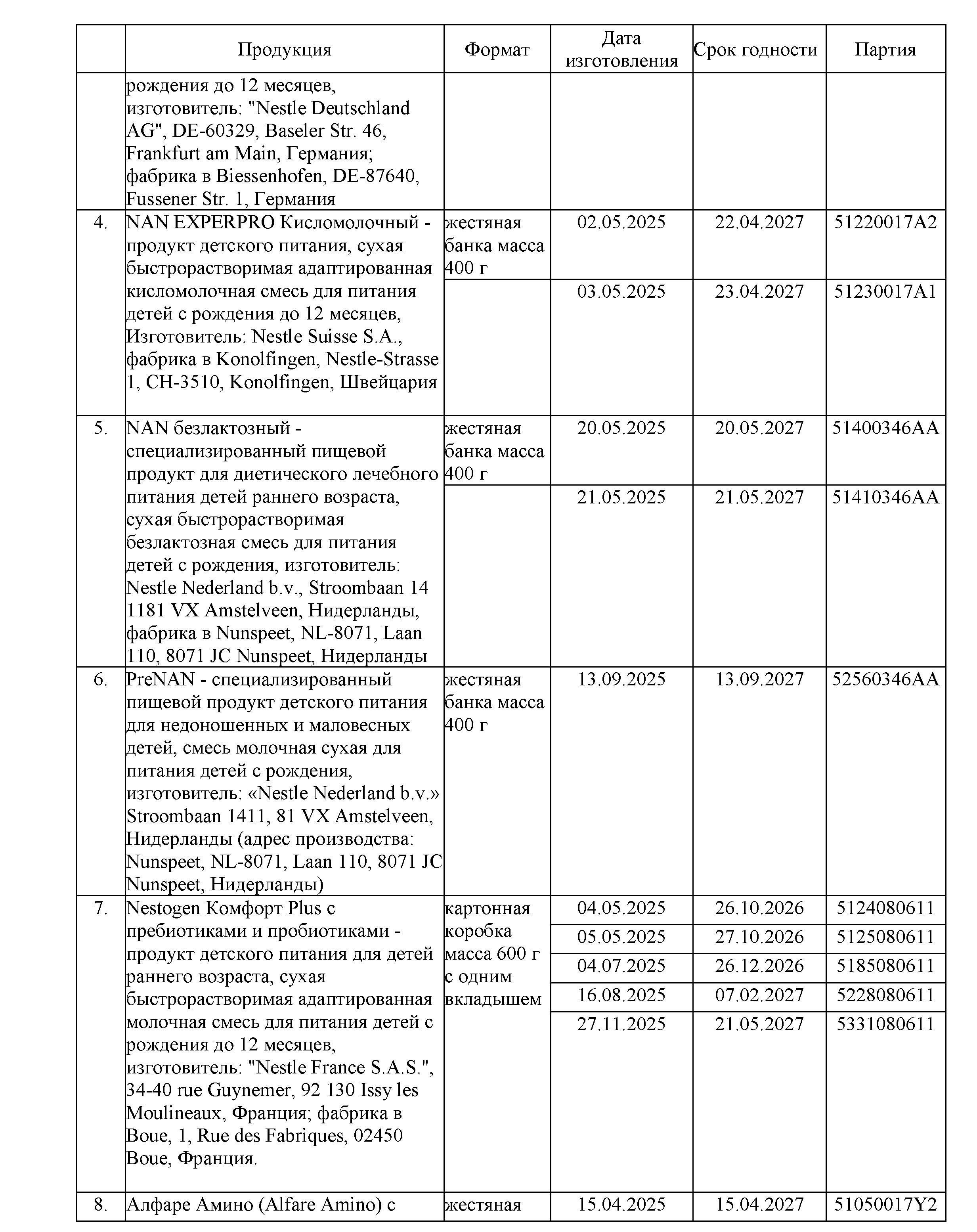 В Управление Роспотребнадзора по Пермскому краю поступила информация из Федеральной службы по надзору в сфере защиты прав потребителей и благополучия человека о введении с 06.01.2026 г. временную санитарную меру по приостановлению ввоза на территорию Российской Федерации пищевую продукцию детского питания – сухих быстрорастворимых молочных, кисломолочной и безлактозной смесей и сухой смеси на основе аминокислот лечебного диетического питания с товарными знаками: