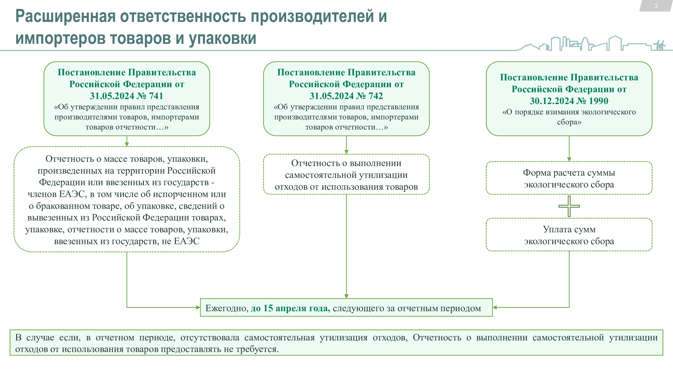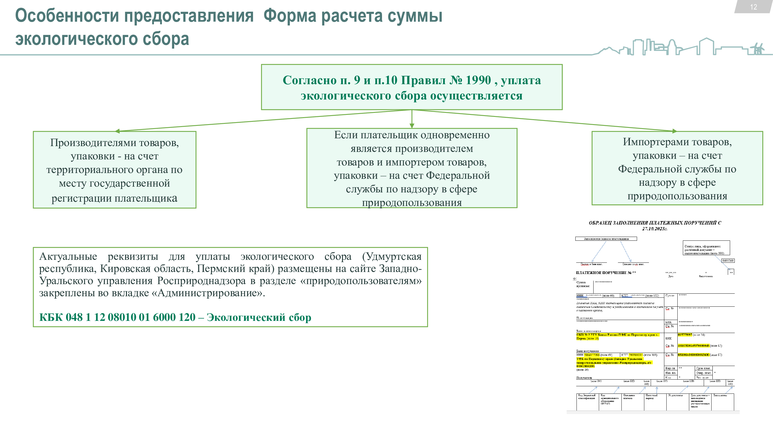 Экологический сбор уплачивается производителями товаров, импортерами товаров, в срок до 15 апреля года, следующего за отчетным периодом.