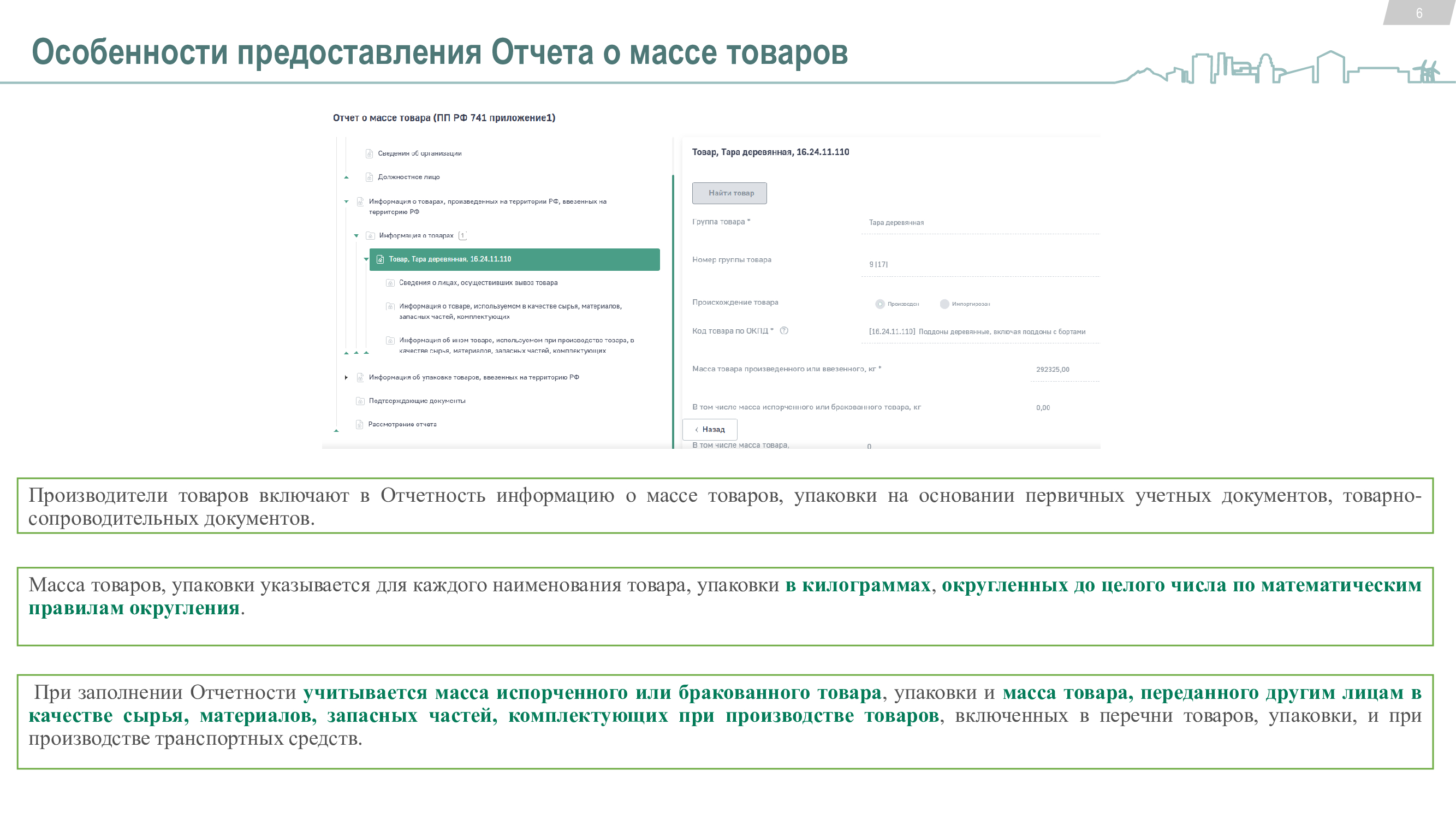 - отчетность о массе товаров за отчетный 2025 год, утвержденная Постановлением Правительства РФ от 31.05.2024 № 741;