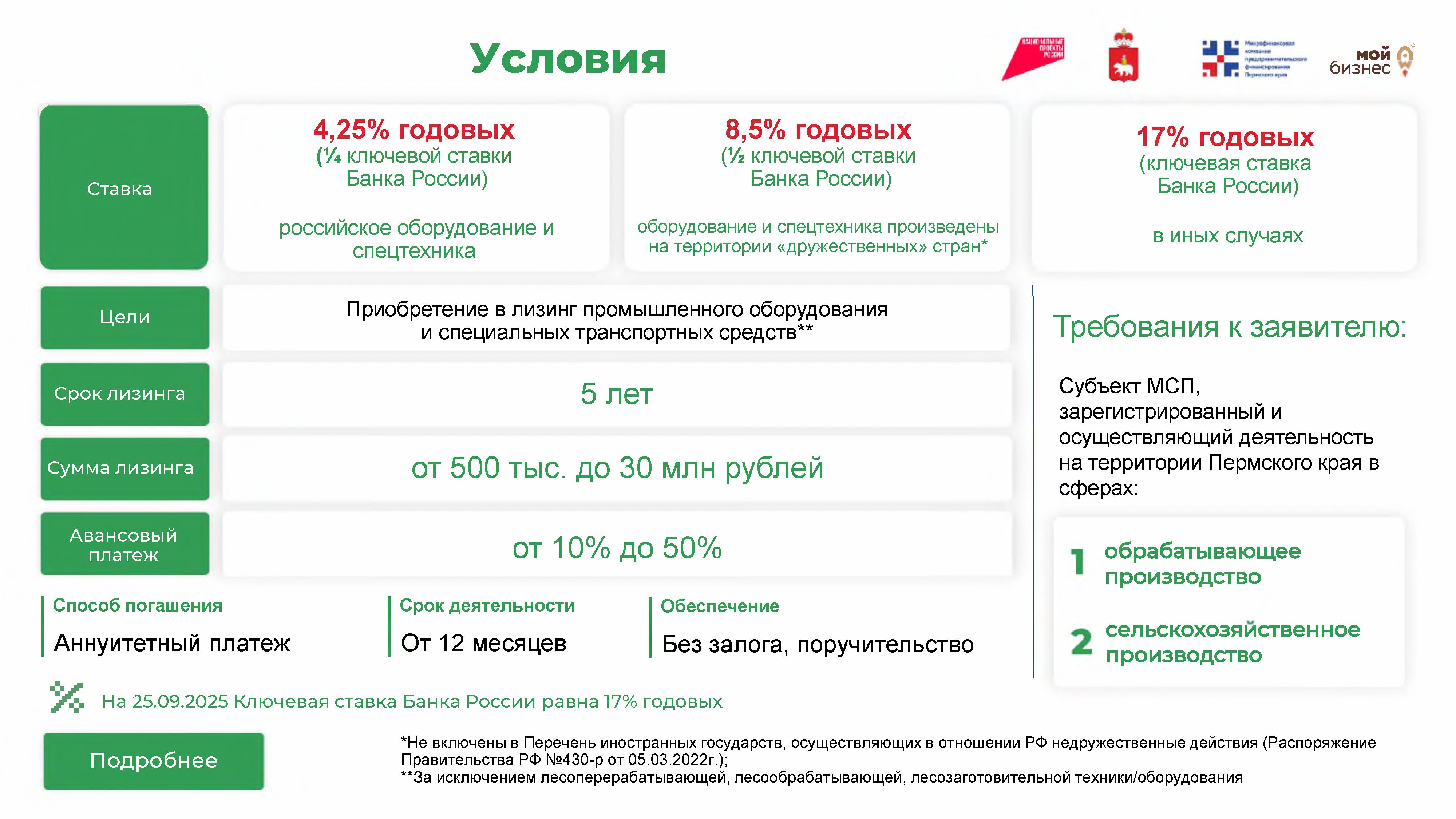 Программы льготного лизинга поддержки субъектов малого и среднего предпринимательства Пермского края реализуемых региональной микрофинансовой компанией АО «Микрофинансовая компания предпринимательского финансирования Пермского края»